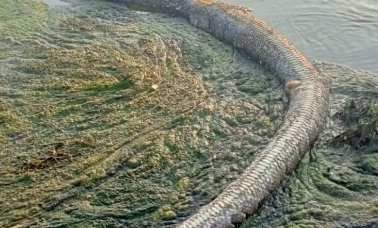 खारजा नहर में मिला विशाल मृत अजगर, वन विभाग ने शुरू की जांच