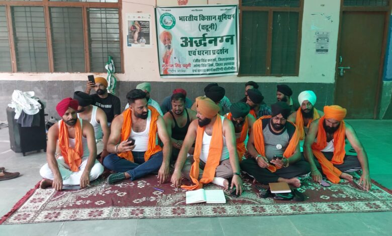 शाहजहांपुर किसान आंदोलन के समर्थन में पूरनपुर में भाकियू का अर्धनग्न प्रदर्शन