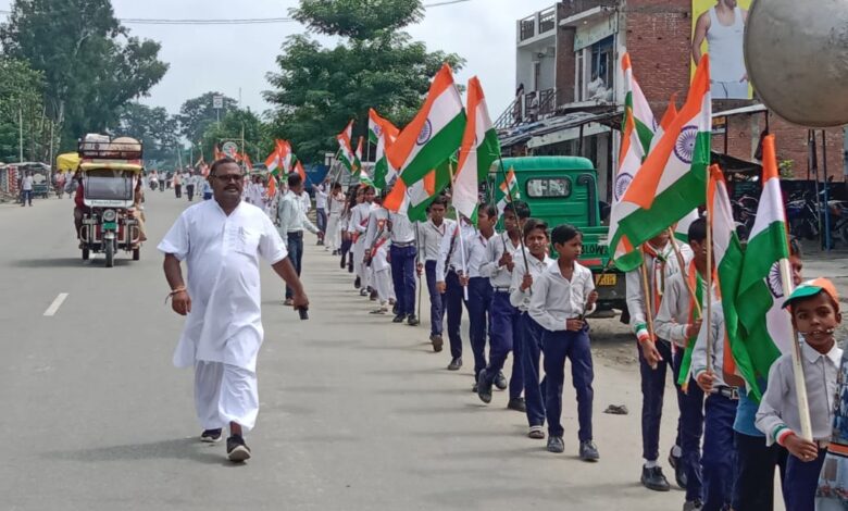 स्वतंत्रता दिवस के अवसर पर छात्र-छात्राओं ने निकाली तिरंगा यात्रा