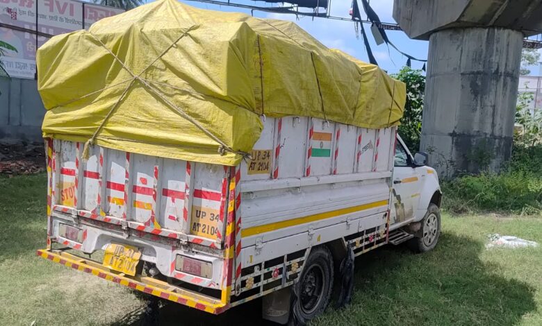 अवैध रूप से काटी गई आम की लकड़ी से भरी पिकअप को वनविभाग ने पकड़ा।