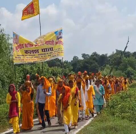 माधोटांडा में निकली भव्य कलश यात्रा, नौ कुंडीय गायत्री महायज्ञ शुरु