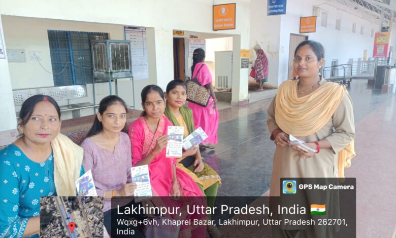 लखीमपुर रेलवे स्टेशन पर मिशन शक्ति के बारे में महिला यात्रियों को किया गया जागरूक