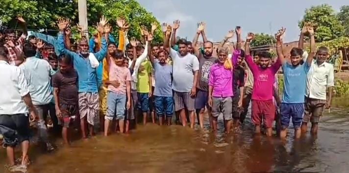 पुलिया बंद होने से खेतों में जलभराव,सड़ रही फसलें ग्रामीणों ने किया प्रदर्शन