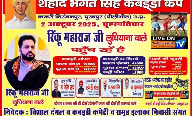 सेहरामऊ के कजरी में दो अक्टूबर को शहीद भगत सिंह विशाल कब्बड्डी कप का होगा आयोजन