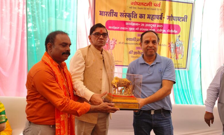 पीलीभीत।जिलाधिकारी ज्ञानेन्द्र सिंह ने बुधवार को देवीपुरा गौशाला में परंपरागत श्रद्धा एवं उत्साह के साथ गोपाष्टमी पर्व मनाया। इस अवसर पर उन्होंने वैदिक मंत्रोच्चारण के बीच हवन व गौ पूजन किया तथा गौशाला का निरीक्षण कर साफ-सफाई एवं व्यवस्थाओं का जायजा लिया।जिलाधिकारी ने गौ माता को केला व गुड़ खिलाया और उपस्थित ग्रामीणों एवं आगंतुकों को गौ सेवा के प्रति जागरूक व प्रेरित किया। उन्होंने कहा कि गौ सेवा भारतीय संस्कृति की आत्मा है। गौ माता न केवल धार्मिक दृष्टि से पूजनीय हैं, बल्कि उनके संरक्षण से पर्यावरण और कृषि दोनों का संतुलन बना रहता है।गोपाष्टमी पर्व के उपलक्ष्य में गौशाला परिसर में भण्डारे का आयोजन किया गया, जिसमें ग्रामीणों ने हर्षोल्लास के साथ प्रसाद ग्रहण किया।इस अवसर पर सोशल हेरीटेज फाउंडेशन के पदाधिकारियों ने जिलाधिकारी श्री ज्ञानेन्द्र सिंह को गौ माता की प्रतिमा भेंट की।कार्यक्रम में मुख्य विकास अधिकारी राजेन्द्र कुमार श्रीवास,मुख्य पशु चिकित्साधिकारी डॉ. पी.के. त्यागी, खण्ड विकास अधिकारी लियाकत अली, ग्राम सचिव, सोशल हेरीटेज फाउंडेशन के पदाधिकारी तथा अनेक गणमान्य नागरिक उपस्थित रहे।