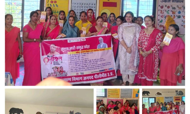 पीलीभीत।मिशन शक्ति अभियान फेज-5.0 के अंतर्गत महिला कल्याण विभाग पीलीभीत द्वारा शुक्रवार को ब्लॉक बरखेड़ा के ग्राम जोगी ठेरा में घरेलू हिंसा और दहेज उन्मूलन विषय पर एक व्यापक जागरूकता चौपाल का आयोजन किया गया।इस कार्यक्रम का संचालन जिला प्रोबेशन अधिकारी के निर्देशन में किया गया।कार्यक्रम में जिला मिशन कोऑर्डिनेटर सुवर्णा पांडे ने घरेलू हिंसा अधिनियम 2005 एवं दहेज उन्मूलन कानून पर विस्तार से जानकारी दी। उन्होंने महिलाओं को शासन द्वारा संचालित प्रमुख योजनाओं — मुख्यमंत्री कन्या सुमंगला योजना, मुख्यमंत्री बाल सेवा योजना, निराश्रित महिला पेंशन योजना, स्पॉन्सरशिप योजना तथा वन स्टॉप सेंटर की उपयोगिता और पात्रता के बारे में भी बताया।चौपाल में जेंडर स्पेशलिस्ट जयश्री सिंह और अजीत सिंह ने महिलाओं को महिला हेल्पलाइन 181, चाइल्डलाइन 1098 जैसे टोल फ्री नंबरों की जानकारी देकर जरूरत के समय सहायता लेने की अपील की।इस अवसर पर बाल विकास परियोजना अधिकारी मूर्ति देवी, विधायक प्रतिनिधि प्यारेलाल, ग्राम की महिलाएं, आंगनवाड़ी कार्यकर्त्री और किशोरियाँ उपस्थित रहीं। कार्यक्रम में महिला कल्याण विभाग की ओर से योजनाओं से संबंधित पैम्फलेट भी वितरित किए गए।कार्यक्रम का उद्देश्य ग्रामीण महिलाओं में जागरूकता बढ़ाना, उन्हें अपने अधिकारों के प्रति सचेत करना और शासन की कल्याणकारी योजनाओं से जोड़ना रहा।