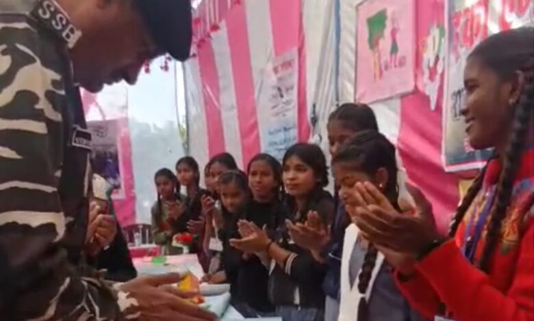 जानकी देवी खादी ग्रामोद्योग सेवा संस्थान भुरजूनिया में खादी महोत्सव के प्रदर्शनी मेले में लगी आकर्षक कला स्टॉल की एस.एस.बी. ने की प्रशंसा