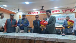 अधिकारियों, ग्राम प्रधानों, पंचायत सचिवों और पत्रकारों ने उनके कार्यकाल को याद करते हुए फूलमालाओं से सम्मानित किया और स्मृति चिन्ह भेंट कर उज्ज्वल भविष्य की कामना की। प्रभारी खंड विकास अधिकारी हेमंत कुमार यादव ने कहा कि अजय देवल ने अपने दायित्वों का निर्वहन पूरी निष्ठा और जिम्मेदारी के साथ किया। उन्होंने विकास कार्यों में पारदर्शिता और गति दोनों सुनिश्चित कीं, जिससे ब्लाक को नई दिशा मिली।अपने संबोधन में अजय देवल भावुक नजर आए। उन्होंने कहा कि पूरनपुर में बिताया गया समय उनके जीवन का अविस्मरणीय हिस्सा रहेगा। यहां के स्टाफ और अधिकारियों का सहयोग हमेशा याद रहेगा। उन्होंने सभी के स्नेह और सम्मान के लिए आभार व्यक्त किया। समारोह में एपीओ आदर्श कुमार, ग्राम पंचायत सचिव रामकिशोर, अवनीश कुमार, अतुल कुमार, राहुल भारती, सौरभ गंगवार, नागेंद्र कुमार, मंजुल मिश्रा, ओम प्रकाश, सुरेश वर्मा, सुबोध कुमार, राकेश शर्मा, अखिलेश गुप्ता, बृजेश कुमार, राहुल कनौजिया, विशाल कुमार, राजेश कुमार, पंकज आर्या, राजकुमार सहित पूरनपुर, मरौरी और अन्य ब्लाकों के सचिव व प्रधान मौजूद रहे।विदाई के क्षणों में जहां एक ओर तालियां गूंज रही थीं, वहीं दूसरी ओर आंखें भी नम दिखीं। सभी ने उनके स्वस्थ, सुखद और सफल भविष्य की कामना करते हुए उन्हें नई पारी के लिए शुभकामनाएं दीं।
