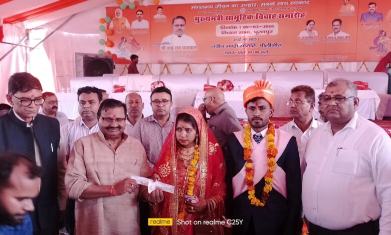 पीलीभीत। नवीन मंडी समिति परिसर में उस समय भावुक और खुशनुमा माहौल बन गया जब एक ही मंडप के नीचे 400 जोड़ों ने सात फेरे लेकर अपने नए जीवन की शुरुआत की। मुख्यमंत्री सामूहिक विवाह योजना के तहत आयोजित इस समारोह में जनप्रतिनिधियों और अधिकारियों ने नवदंपतियों को आशीर्वाद देकर उनके सुखद दांपत्य जीवन की कामना की।समाज कल्याण विभाग द्वारा संचालित मुख्यमंत्री सामूहिक विवाह योजना के अंतर्गत नवीन मंडी समिति परिसर में भव्य सामूहिक विवाह समारोह आयोजित किया गया। विधानसभा पूरनपुर क्षेत्र के कुल 425 पंजीकृत जोड़ों में से 400 जोड़ों का विवाह विधि-विधान और पूरे पारंपरिक रीति-रिवाजों के साथ संपन्न कराया गया। इनमें 8 अल्पसंख्यक समुदाय के जोड़े भी शामिल रहे।एक ही स्थान पर सजे मंडप, गूंजती शहनाइयों की धुन और वर-वधू के परिजनों की खुशियों से पूरा परिसर उत्सव में बदल गया। कई परिवारों की आंखें उस समय नम हो गईं जब उनकी बेटियों ने सात फेरे लेकर अपने नए जीवन की शुरुआत की।समारोह में मुख्य अतिथि के रूप में विधायक पूरनपुर बाबूराम पासवान, जिलाधिकारी ज्ञानेन्द्र सिंह, पुलिस अधीक्षक सुकीर्ति माधव, मुख्य विकास अधिकारी राजेन्द्र कुमार श्रीवास, नगर मजिस्ट्रेट विजय वर्धन तोमर, जिला विकास अधिकारी, डीसी मनरेगा और जिला समाज कल्याण अधिकारी चन्द्रमोहन विश्नोई सहित अन्य अधिकारी मौजूद रहे।अधिकारियों और जनप्रतिनिधियों ने नवविवाहित जोड़ों को आशीर्वाद देते हुए उन्हें उपहार सामग्री भी वितरित की। इस अवसर पर विधायक बाबूराम पासवान ने कहा कि मुख्यमंत्री के निर्देशन में संचालित यह योजना गरीब परिवारों के लिए किसी सहारे से कम नहीं है। इसका उद्देश्य यह सुनिश्चित करना है कि आर्थिक अभाव के कारण कोई भी बेटी विवाह से वंचित न रह जाए।जिलाधिकारी ज्ञानेन्द्र सिंह ने नवदंपतियों को संबोधित करते हुए कहा कि यह दिन उनके जीवन की नई शुरुआत है। उन्होंने कहा कि यदि नवविवाहित युवा अपना रोजगार शुरू करना चाहते हैं तो मुख्यमंत्री युवा उद्यमी विकास अभियान के तहत आवेदन कर सकते हैं। इस योजना के माध्यम से युवाओं को पांच लाख रुपये तक का ब्याजमुक्त ऋण प्रदान किया जाता है, जिससे वे अपना स्वरोजगार स्थापित कर सकें।कार्यक्रम के दौरान उपस्थित सभी लोगों ने नवदंपतियों को शुभकामनाएं देते हुए उनके सुखी और समृद्ध दांपत्य जीवन की कामना की। एक साथ सजी 400 शादियों ने पूरे समारोह को यादगार और भावनात्मक बना दिया।