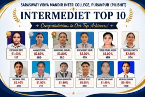 यूपी बोर्ड रिजल्ट :सरस्वती विद्या मंदिर इंटर कॉलेज पूरनपुर का शत-प्रतिशत परिणाम